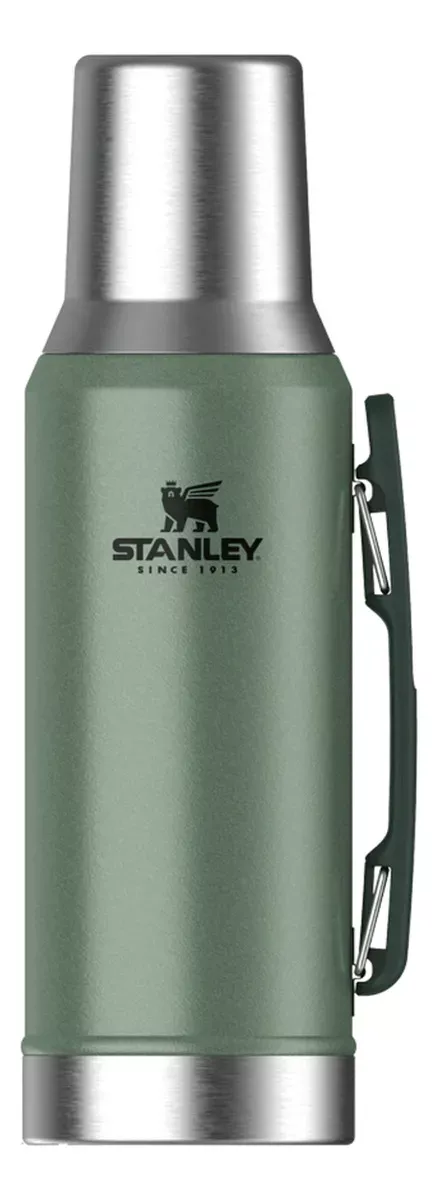 Termo Stanley Mate System Classic 1.2L: Diseñado específicamente para los amantes del mate, este termo mantiene tus líquidos fríos o calientes por hasta 36 horas. Su tecnología exclusiva en el tapón permite un flujo continuo de agua en el punto ideal, brindando la cebada perfecta. La tapa de acero inoxidable también se convierte en mate, lo que lo hace aún más funcional. Con capacidad de 1.2L, es perfecto para disfrutar de un mate largo, ya sea solo o acompañado.