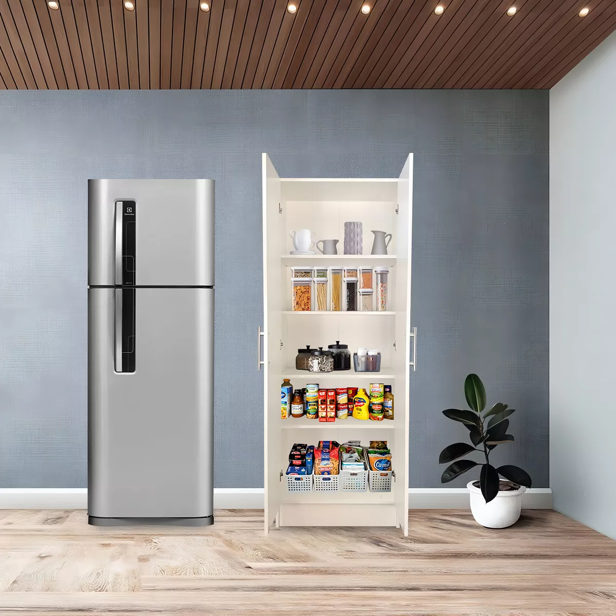 El Despensero 2 Puertas Cocina 1.80 Forrado Mueble Organizador Color Blanco es el complemento perfecto para tu cocina. Con su diseño moderno y elegante, este mueble te brinda la funcionalidad que necesitas para mantener tu despensa organizada. Sus dos puertas te permiten acceder fácilmente a tus alimentos y utensilios, mientras que sus cinco estantes ofrecen amplio espacio de almacenamiento. Fabricado con materiales de alta calidad como la melamina, este despensero es resistente y duradero. Además, su color blanco le da un toque de luminosidad y estilo a tu cocina. Disfruta de un espacio ordenado y práctico con este despensero.