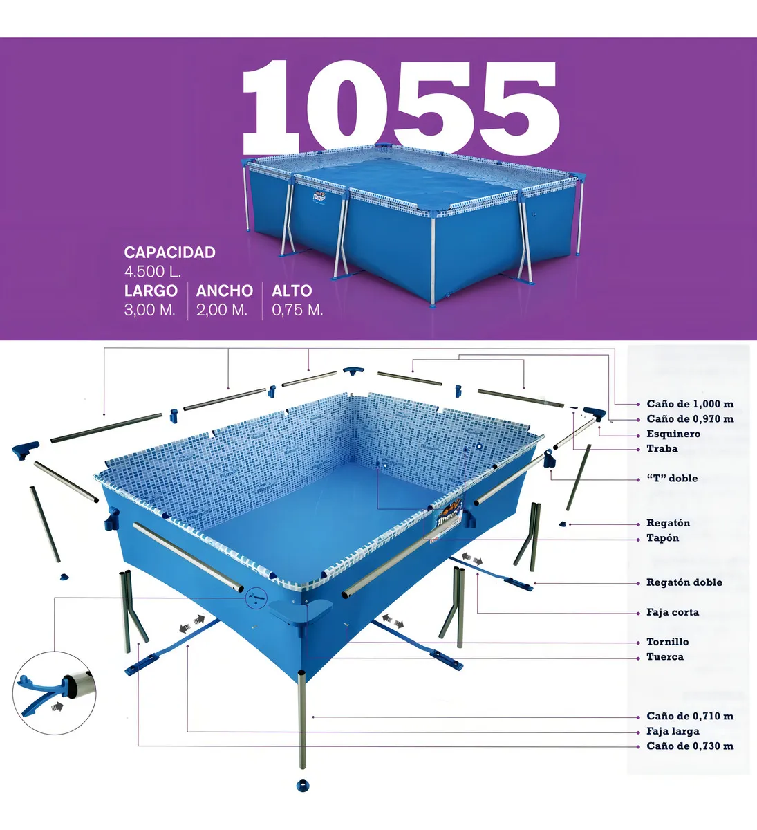 Materiales del armazón: PVC, Acero inoxidable